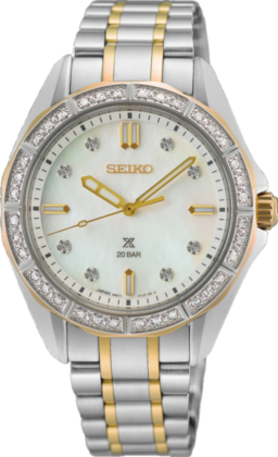 De damescollectie van Seiko biedt aansprekende en elegante designs. Ontdek de sublieme afwerking van de wijzerplaten en het gebruik van aansprekende patronen, Crystal glass of luxe diamanten.